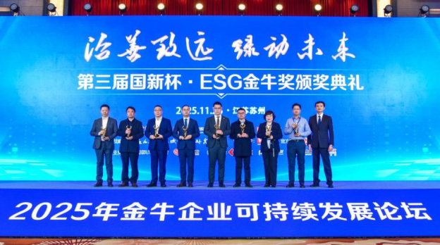 11月26日,由中国证券报与 中国国新 联合主办的“2025年金牛企业可持续发展论坛暨第三届国新杯?ESG金牛奖颁奖典礼”在苏州隆重举办。大会以“治善致远,绿动未来”为主题,汇聚政、产、学、研代表,共话ESG生态构建、共探绿色转型路径。在此次盛会上, 和而泰 凭借其在ESG领域的扎实实践与突出成果,荣膺“国新杯?ESG百强金牛奖”,彰显了资本市场对其可持续发展能力的高度肯定。