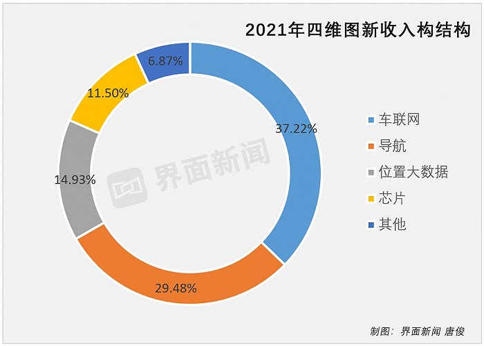 车联网、位置大数据、芯片等业务收入,占总营收比例逐年提高。到2021年,车联网占总营收比例达到了37.22%,是最大的业务板块,位置大数据占比近15%,芯片占比约11.5%。