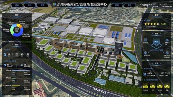 广联达科技股份有限公司与泉州芯谷南安分园区管委会携手共建基于CIM的“规建管服”一体化智慧园区项目,该项目以“数字孪生”理念为出发点,以园区开发运营全生命周期的“规建管服”一体化业务为主线,利用BIM+3DGIS和云计算、大数据、物联网、移动互联网、人工智能等信息技术,实现物理园区全过程、全要素、全方位的数字化、在线化、智能化。构建起物理维度上的实体园区和信息维度上的数字孪生园区的共生模式,形成线上线下协同运作、互联互通、全面感知、智能处理、虚实融合的园区发展新形态。