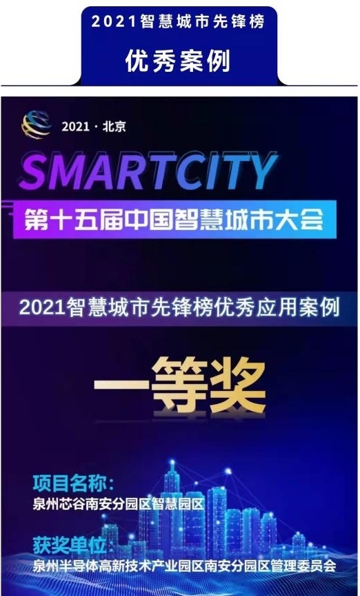 11月4日,中国智慧城市大会正式揭晓“2021智慧城市先锋榜优秀应用案例”获奖榜单。由广联达科技股份有限公司承建的泉州芯谷南安分园区智慧园区项目脱颖而出,荣获优秀应用案例一等奖。