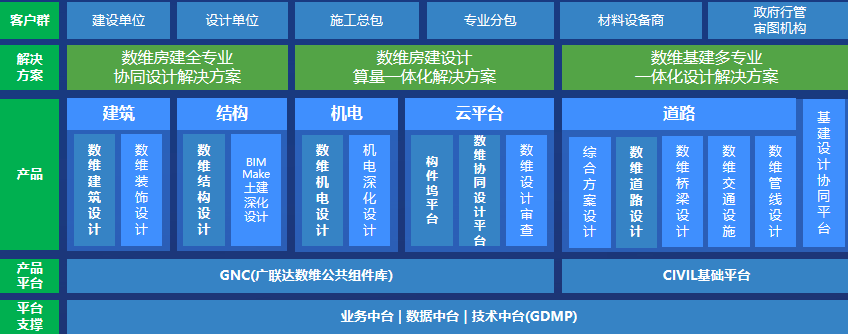 数维设计产品是广联达一款基于国产三维设计平台打造的,全专业BIM正向设计解决方案,通过“端+云”的形式,结合平台级支撑的构件级数据协同,变革了传统协作模式,打破各专业间的协同壁垒,同时与规范的融合,满足国内设计师的设计习惯,数维设计成果打通设计-造价-施工一体化数据互通,更好的提升设计效率与设计质量。