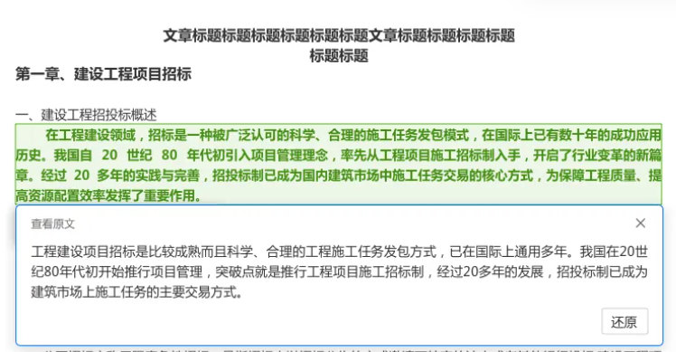 多种风格改写模式,不满意即可还原,一键生成改写报告。