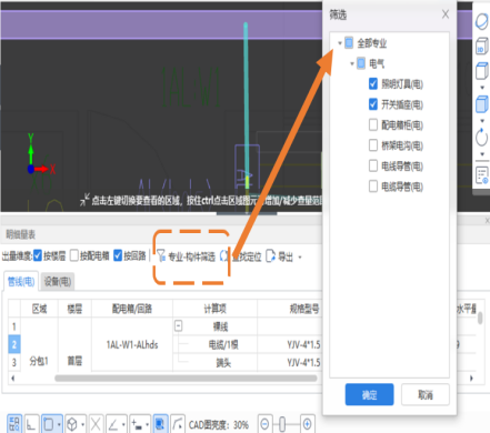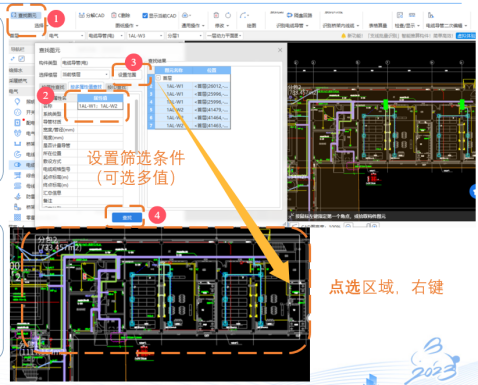 ●筛量:支持按区域快速筛选工程量,工程量筛选支持场景更多样化,专业构件、查找图元、批量选择管、明细工程量-框选查量。