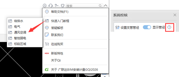帮助指引:【识别管道】功能内系统校核窗体上方点击“问号”,即可调出操作说明