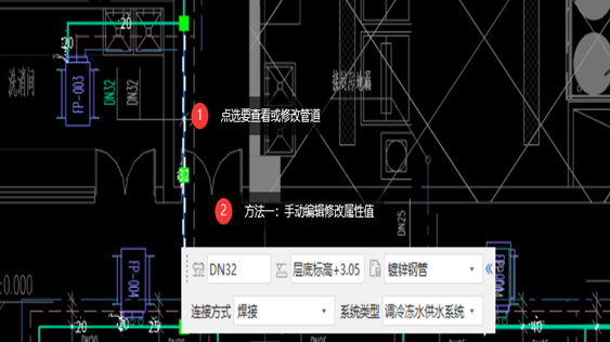 ●设置支管管径:根据风机编号批量设置支管管径及标高,平面图有无标注均可一次性解决。