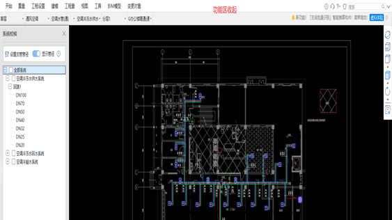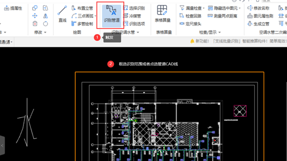 ●识别管道:一键框选,AI智能识别管道及系统,冷媒管和空调水管同时识别,一个功能,一次操作,全部搞定。