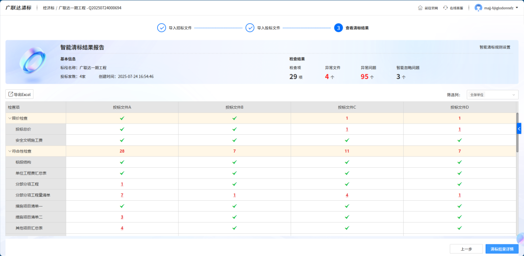 政策节点,广联达清标通过数据、技术与AI等手段,将政策要求转化为可操作的分析工具,既落实了“市场化定价”的改革方向,又通过风险前置管控实现“风险可控”,为新清单政策下的清标工作提供高效支撑。