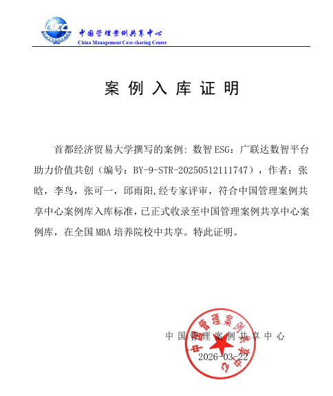 由首都经济贸易大学中国ESG研究院专项编撰的专题实操案例《数智ESG:广联达数智平台助力价值共创》,已通过多轮交叉合规评审与行业实操核验,正式录入中国管理案例共享中心案例库。该平台是国内商科教研领域官方核心资源阵地,入库优质案例将全域供给全国MBA、EMBA核心培养院校,作为实景化产业教研固定授课范本,此次顺利入库,标志着行业顶尖学术圈层全面认可广联达深耕建筑赛道的数智化ESG全链路落地能力。