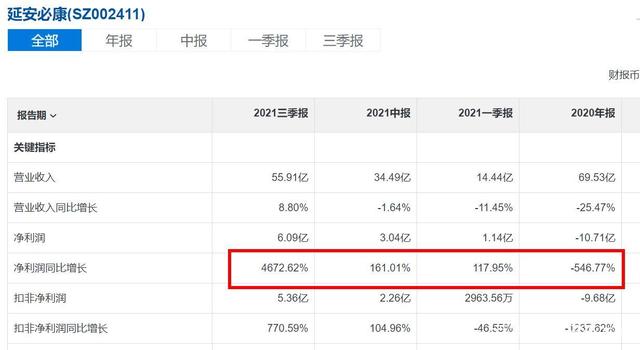 近日,延安必康制药股份有限公司(下称延安必康)发布三季报,2021年前三季度营收55.91亿元,同比增长8.8%,季度环比增长6.8%;实现归母净利润6.1亿元,比上年同期增长4672.62%,季度环比增长61.1%。其中,第三季度实现归母净利润3.1亿元,比上年同期增长1434.52%。