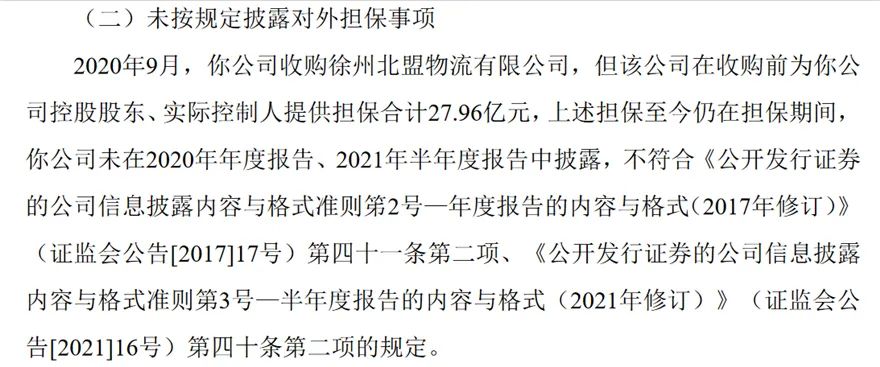 2020年9月2日,延安必康发布公告,将以自有资金人民币14.82亿元收购北盟物流100%股权。公告显示,北盟物流尚处于亏损状态,2019年、2020年上半年月分别亏损1.49亿元、8063万。而且,北盟物流还身负给上市公司大股东新沂必康和李宗松所做的27.96亿元的担保。