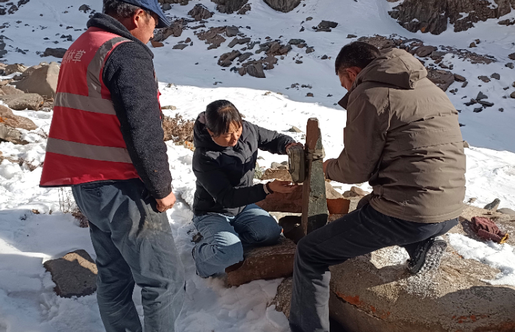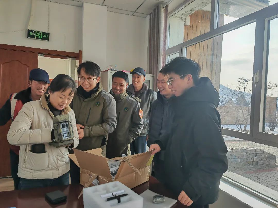 △海康威视工程师解工(右一)为管护员们详细示范并讲解监测设备的使用方法△