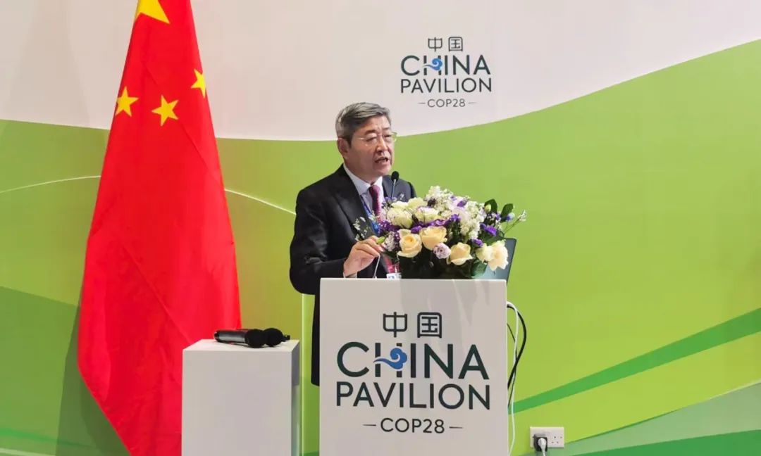 图:刘磅董事长在COP28大会分享达实低碳节能技术