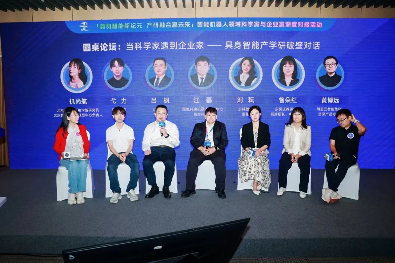 大会期间,“智能机器人产业科学家与企业家深度对接”活动,聚焦智能机器人核心议题,搭建起科学家与企业家双向赋能的科创生态平台。其中,“当科学家遇到企业家——具身智能产学研破壁对话”圆桌论坛,邀请了北京大学、清华大学、国家人形机器人创新中心等学术界代表,与达实智能、阿里云、步科股份等企业界代表展开研讨。
