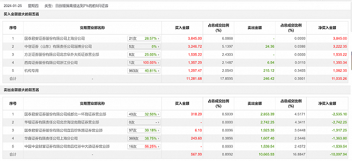 1月25日,中粮资本今日涨停,全天换手率达3.58%,振幅达3.43%。龙虎榜数据显示,营业部席位合计净买入937.32万元。其中,机构买入1297.47万元,卖出215.12万元,合计净买入1082.35万元。此外,国泰君安证券上海分公司、中信证券(山东)淄博分公司分别买入3845.00万元、3246.72万元;国泰君安证券成都北一环路证券营业部、华福证券北京海淀南路证券营业部分别卖出2853.39万元、2742.25万元。