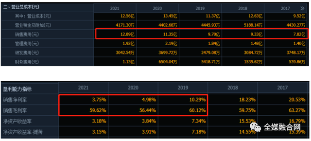 《全媒融合网》注意到,贵州百灵除了部分药品纳入《医保目录》外,该公司利用自建营销网络推广OTC产品,销售费用高企,并且稳步增长,蚕食该公司利润,销售净利率持续下滑。