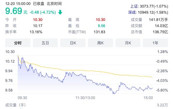▲贵州百灵20日收报9.69元/股,总市值136.75亿元