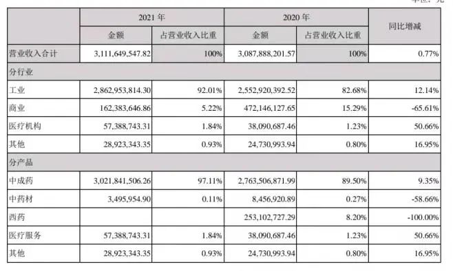 业绩最有发言权,以2021年为例,公司中成药收入30.22亿,约占总营收97%。显然,上述种种跨界探索、战略布局,大都没能转化为真实营收。