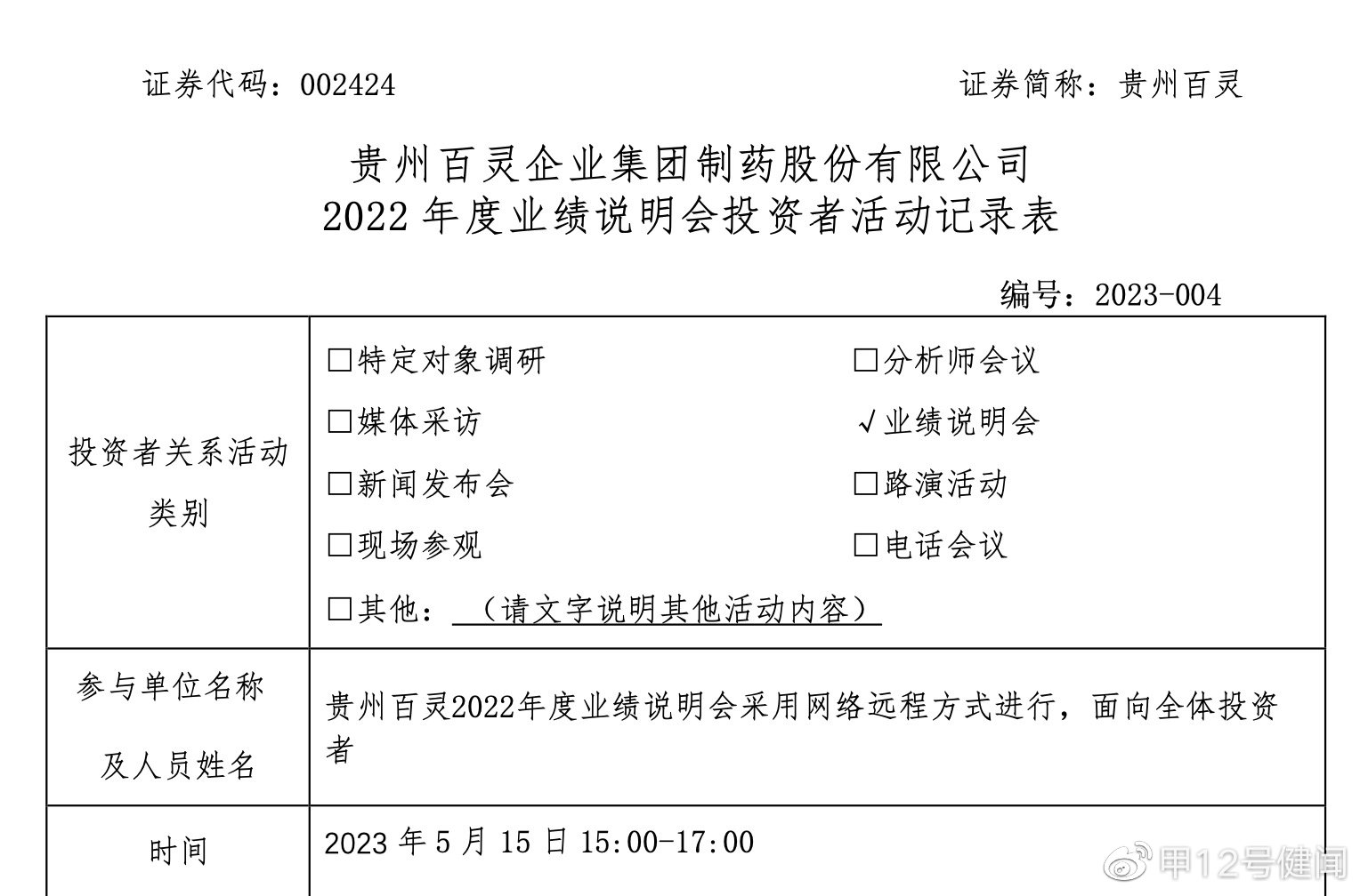 5月16日,贵州百灵发布公告称,公司于5月15日举行了2022年度业绩说明会。会议中,贵州百灵就2022年年报利润低于业绩预告的原因、公司经营业绩情况持续能力、公司管理规划等作出解答。