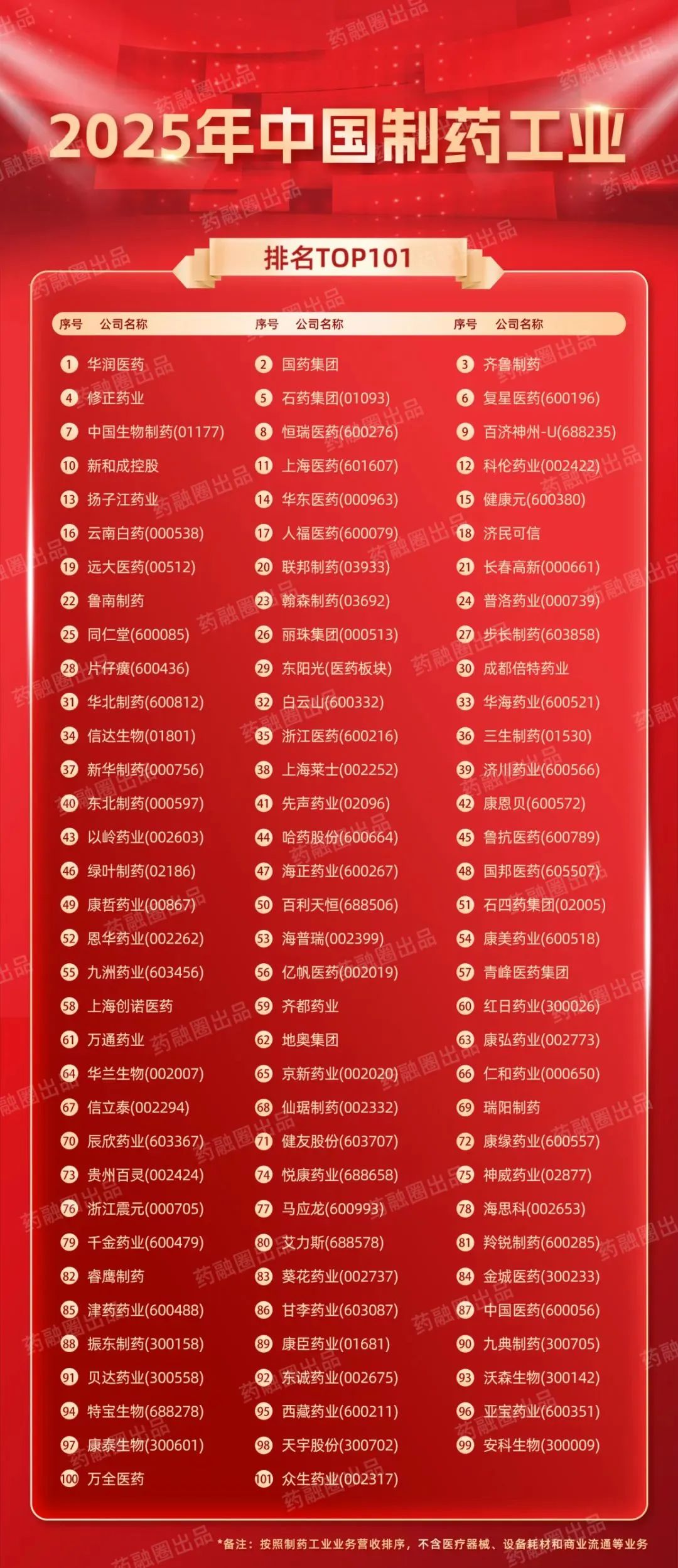 据悉,该榜单以核心制药工业营收为硬性标尺,权威定义中国制药头部企业的竞争格局与发展能级。榜单中的“100”映照当下格局,代表中国制药工业现有格局的集大成者,彰显产业领军者的市场主导地位;“1”则象征着未来一个全新的开始,是指技术颠覆、模式革新或国际化突围的创新标杆,预示着行业创新变革的无限可能。TOP100+1不仅是对传统百强排名的一种补充和升级,更是突出中国从制药大国向制药强国,从规模向创新转型的大趋势。