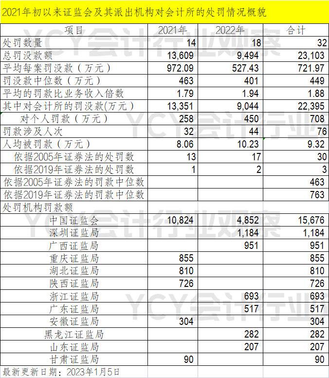 证监会系统在2022年已经处罚了至少18次会计所,比2021年多了4次。详见下表: