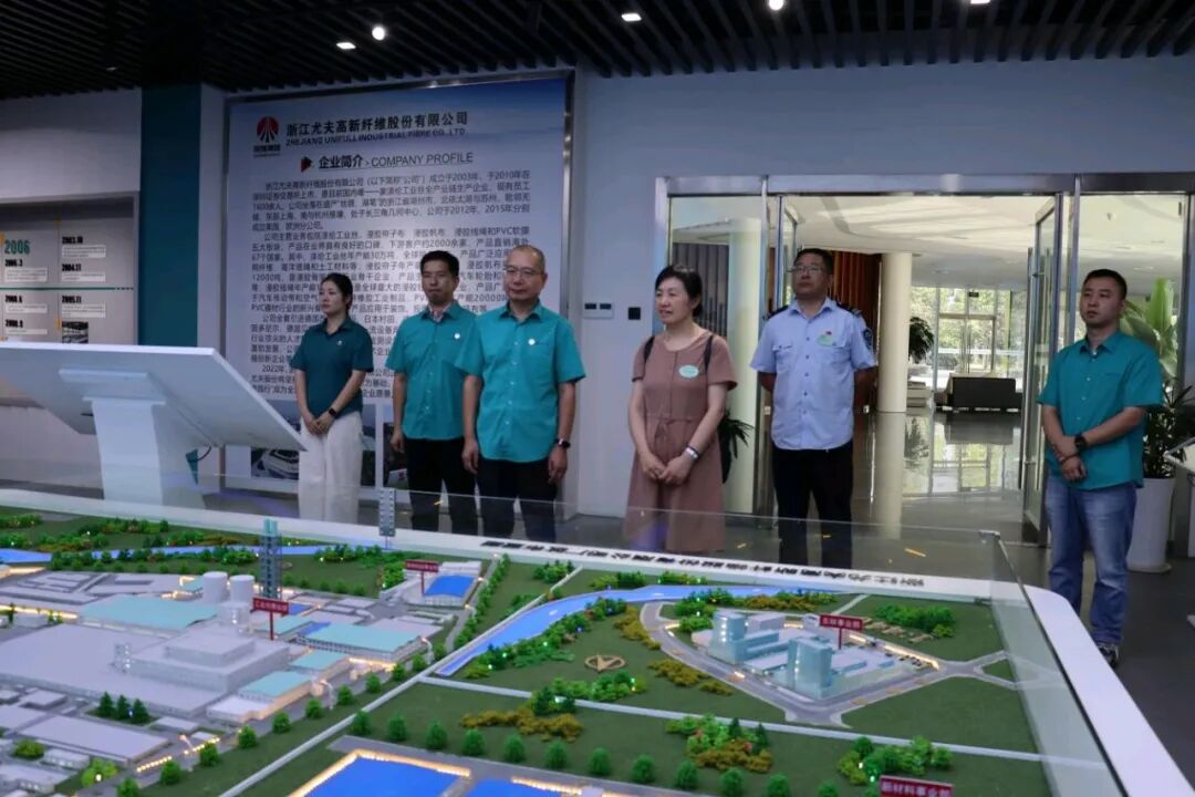 徐蕾一行首先参观了公司展厅,系统了解了尤夫股份的发展脉络、先进工艺流程、广泛的产品应用领域以及持续的技术创新成果。深入了解公司涤纶工业丝、橡胶骨架材料等核心产品的技术研发与应用场景。