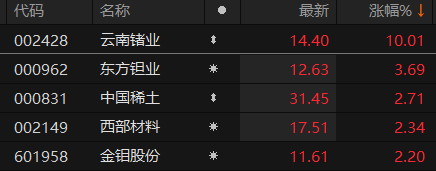 7月5日早盘,A股小金属板块持续走高。9时40分,云南锗业两连板。东方钽业、中国稀土等跟涨。