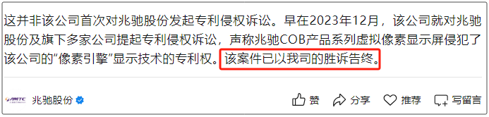 而兆驰股份公众号称,该案件兆驰股份已经胜诉。如果不是通过专利无效策略胜诉,大概率是通过不侵权抗辩应诉等方式获得胜诉吧。