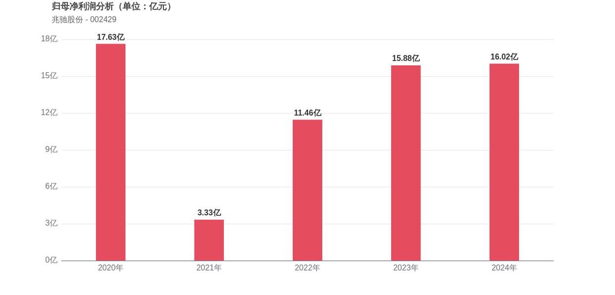 利润角度分析,2020年兆驰股份实现归母净利润17.63亿元,2024年16.02亿元。利润水平在高位基础上有所回落,但仍维持较高水平。