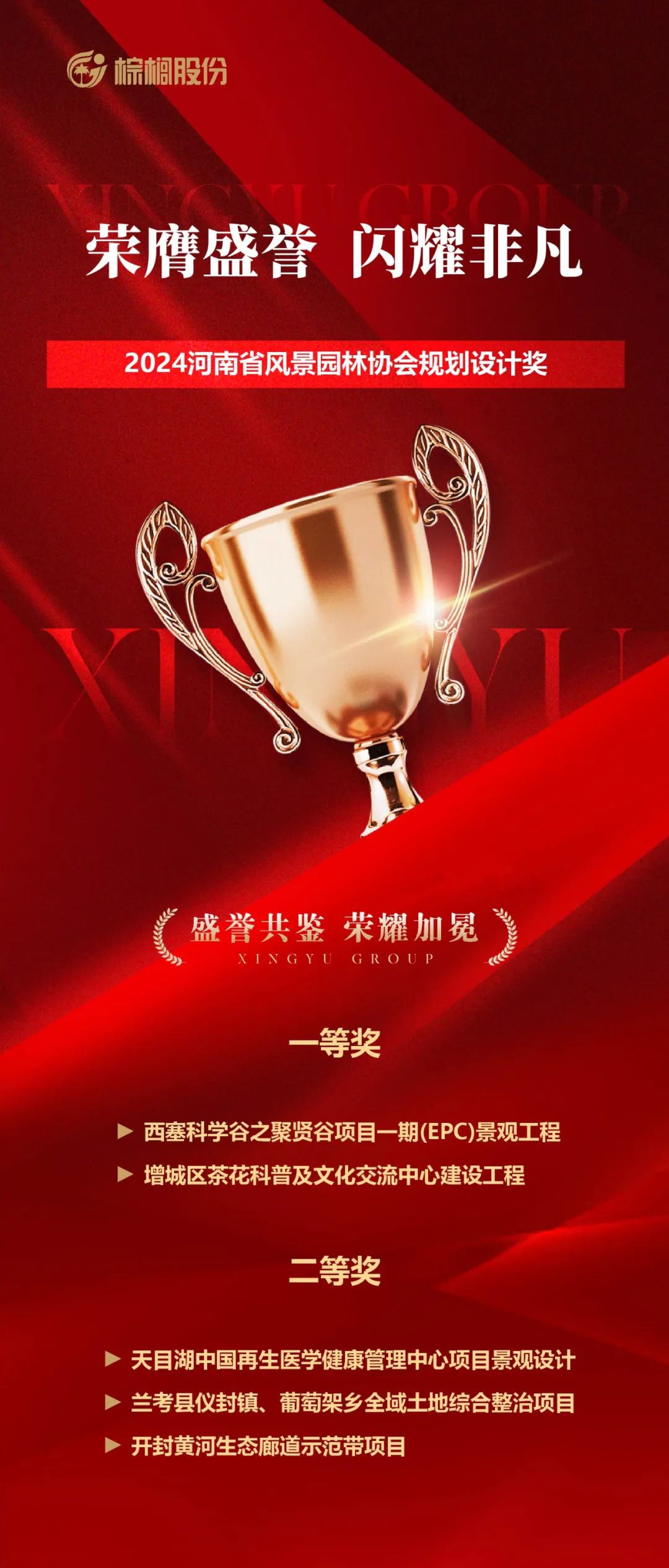 喜讯|棕榈股份作品荣获2024年度河南省风景园林规划设计奖五项奖项