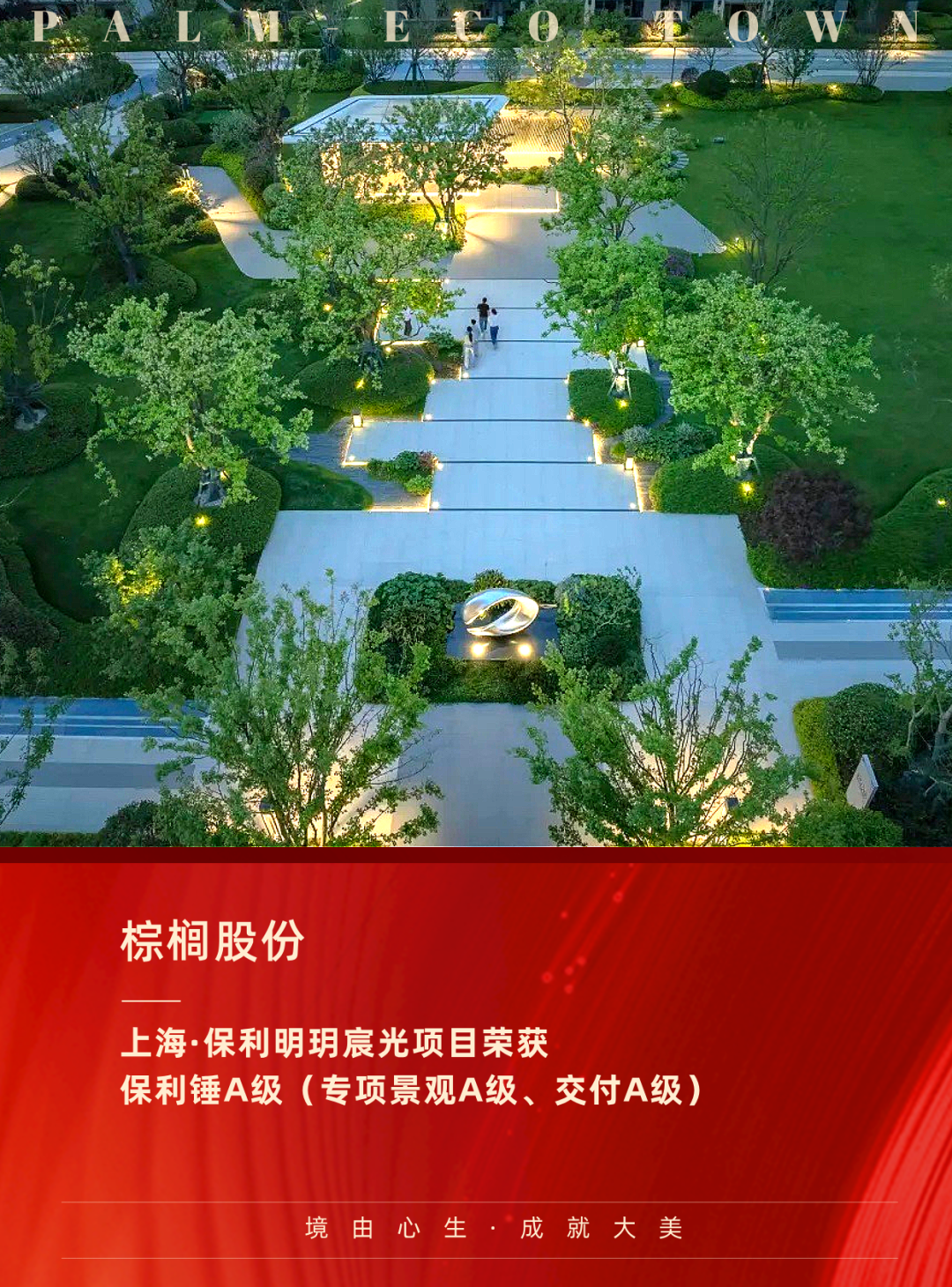 棕榈股份承建的上海·保利明玥宸光项目,荣获保利锤A级。施工过程中我们秉承“以匠心铸精品”的核心价值观。巧施绿化技法,表达开发方理念;坚守质量底线,铸造精品工程;注重安全把控,以人为本。一石一木皆为用,一花一水精心培,项目从开始到结束,每个位置、每棵树,小到每块石头,项目团队都要求用心布置,更进一步要求景观施工人员严格依照设计标准精准落位。项目最终高标准交付,呈现出完美效果,获得开发方和业主高度认可。