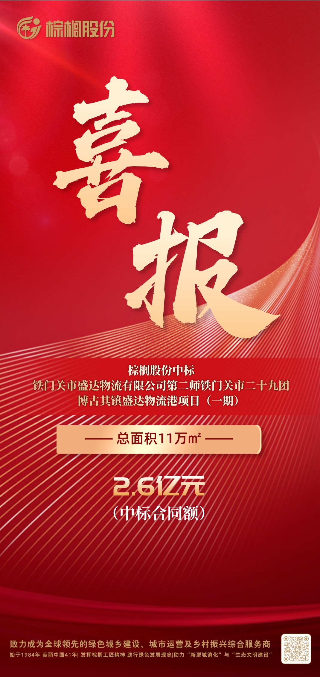 喜报丨棕榈股份2.6亿元中标新疆铁门关市盛达物流港项目(一期)
