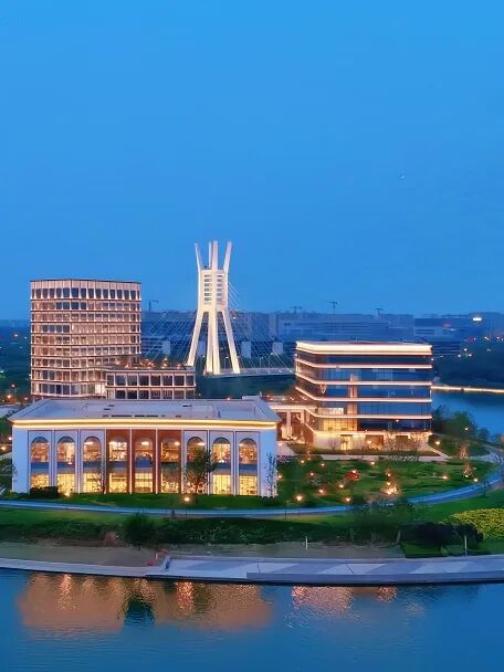 超聚变数字技术有限公司 研发中心及总部基地项目位于郑州市郑东新区龙湖片区“龙脊”之上,占据北龙湖北岸正对金融岛的核心位置。项目总占地182亩,一条连接北龙湖的景观河将项目分成东西两个地块,内部园区总景观面积达9.2万平方米,与龙湖公园连接的外围市政公园提升改造部分达6.3万平方米。