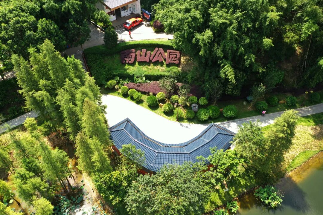 广东南山森林公园位于广东省云浮市云城区,1993年经广东省林业厅批准设立,总面积3960亩,森林覆盖率达94%。公园以自然山水景观为主体,平均负氧离子浓度达2500个/立方厘米。园内记录到国家二级保护动物白鹇栖息。现存植物约650种,包括降香黄檀、红豆杉等珍稀树种1.2万株,其中华南红花油茶林面积6.67公顷,为省内保存最完整的连片红花油茶林之一。