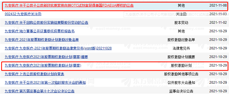 就像预期差、信息差一样,时间差也是资本市场巨大的套利机会。巧合的是,九安医疗的股票激励计划与子公司获得美国FDAEUA授权利好消息之间的时间差,只有10天。