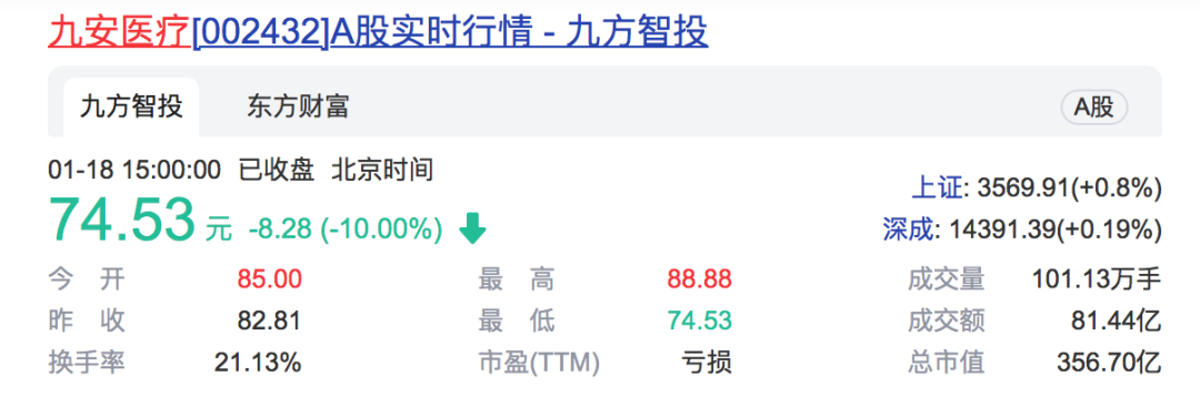 新冠检测概念牛股九安医疗(002432)迎来罕见放量跌停。
