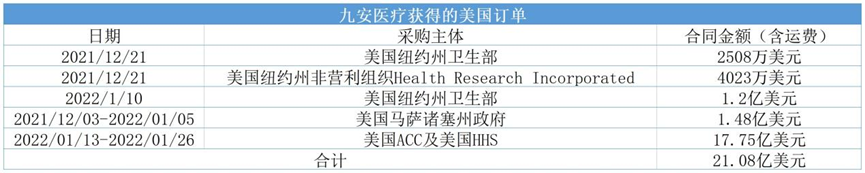 自那以后,九安医疗就陆陆续续斩获了好几份来自美国政府的大订单。