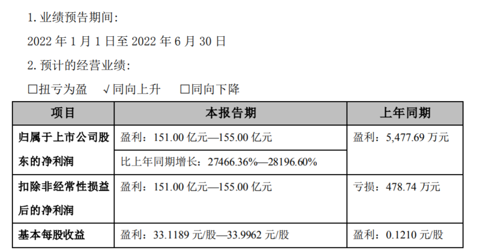7月14日,天津九安医疗电子股份有限公司(九安医疗,002432)公告称,预计上半年净利151亿元至155亿元,较去年的5477.69万元相比,增长27466.36%至28196.60%;预计扣非净利润151亿元至155亿元,而去年同期亏损478.74万元、