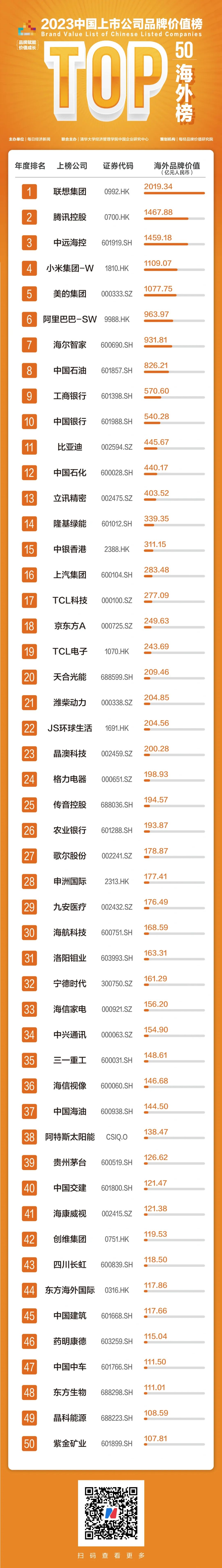 近日,由每日经济新闻发起、清华大学经济管理学院中国企业研究中心联合主办的“2023第七届中国上市公司品牌价值榜发布会”在北京举行。