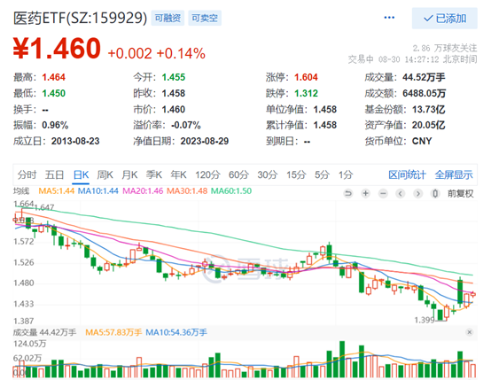 热门ETF方面,跟踪中证医药指数的医药ETF(159929)午后翻红涨0.14%,成交额超6500万,冲击三连涨,午后拉升区间持续溢价交易,显示资金踊跃布局!