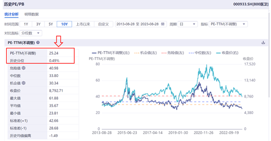 经历了长达两年多的深度调整,医药ETF(159929)标的指数估值方面,截至2023年8月25日,中证医药指数最新PE仅25.24倍,处于近10年0.49%的分位数,即低于近10年超99.5%的时间区间。