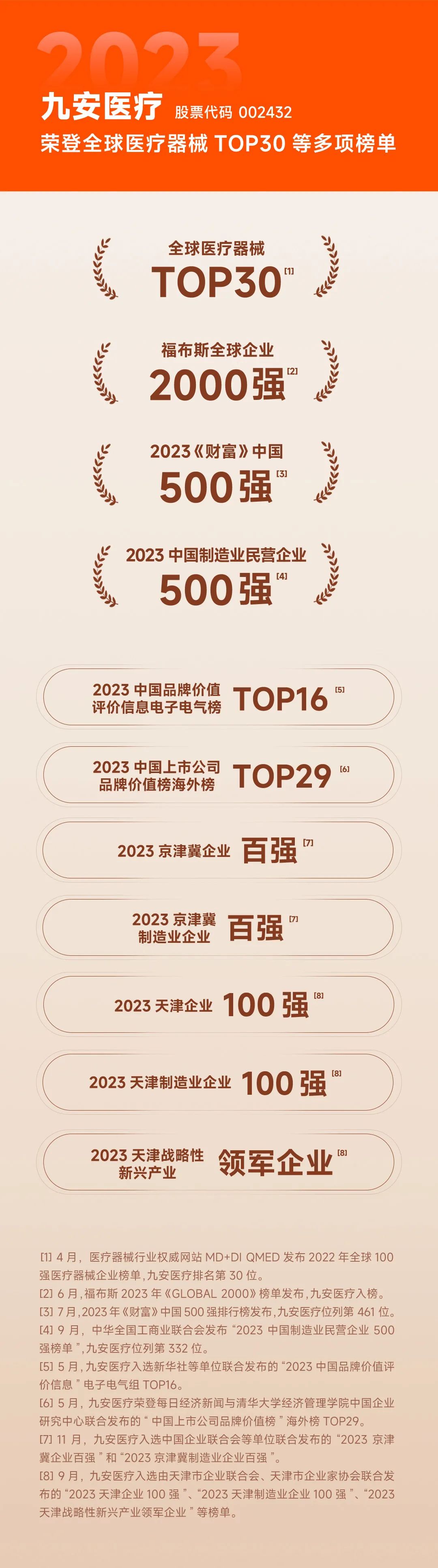 此外,回首2023年,九安医疗凭借在医疗健康领域多年技术积累与持续提升的自主创新能力,还成功荣登多项重量级榜单,受到专业评审机构与用户的认可。