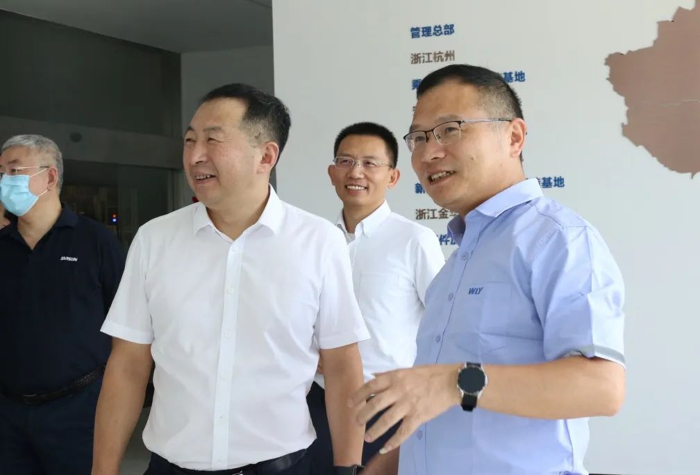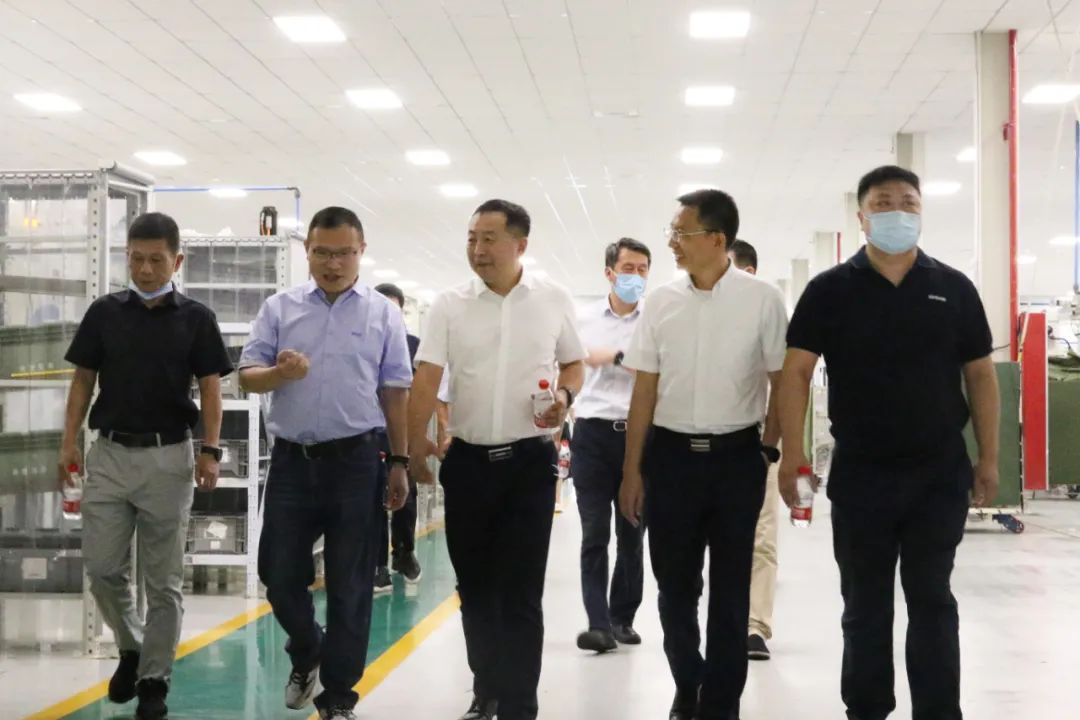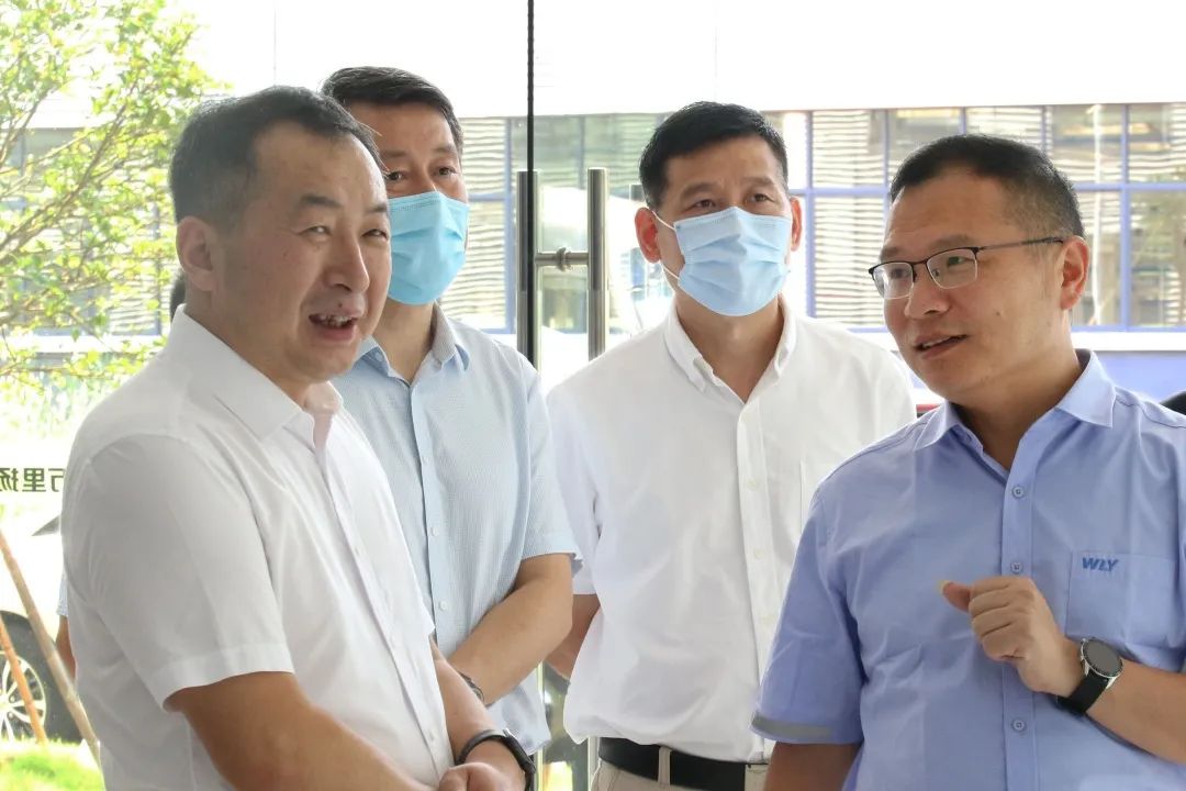 刘子军一行参观了万里扬位于新能源汽车小镇的生产车间,任华林详细介绍了企业生产经营、产品研发、智能制造等情况。