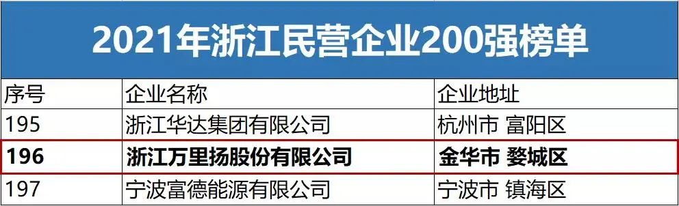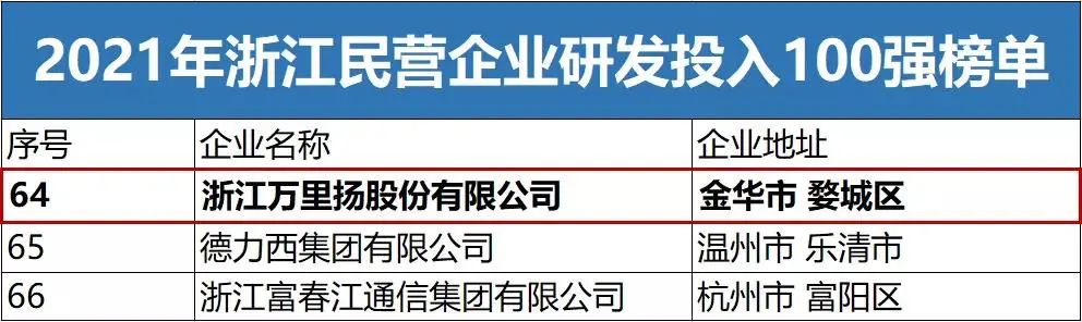 12月22日,浙江省工商业联合会发布了“2021年浙江民营企业200强、研发投入100强、就业100强”三张榜单。万里扬荣登“2021年浙江民营企业200强”和“2021年浙江民营企业研发投入100强”双榜单。