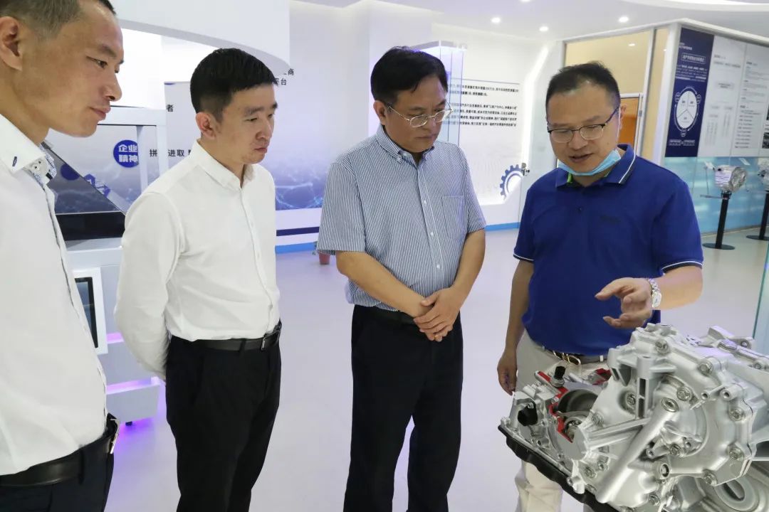 张善坤副会长一行首先参观了公司展厅,任华林副总裁介绍了公司发展历程、产业布局、产品创新等情况。万里扬经过26年发展,成功构筑起了乘用车变速器、商用车变速器、新能源驱动传动系统等协同发展的产品格局。针对目前国内新能源汽车产业高速增长的态势,万里扬抢抓发展机遇,实现了自动、混动和纯电的完整新能源产品布局。“产品有没有受到国际贸易摩擦影响?”“有多少零部件需要进口?”“芯片供应影响大不大?”张善坤副会长详细询问了产品相关情况,对于万里扬快速发展、全面的产品布局及自主研发的大量投入给予了充分肯定。