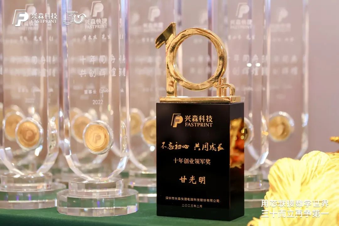 兴森科技的不凡成就,离不开兴森人的坚持与拼搏。为进一步彰显兴森科技“顾客为先、高效可靠、持续创新、共同成长”的核心价值观,会上颁发了“超越特别奖”、“安全生产领军奖”、“品质领军奖”、“精益领军奖”、“创议领军奖”、“技术领军奖”、“十年奉献领军奖”、“十年创业领军奖”等荣誉奖项,以表彰各位获奖者及团队在各自岗位上为集团发展做出的贡献。