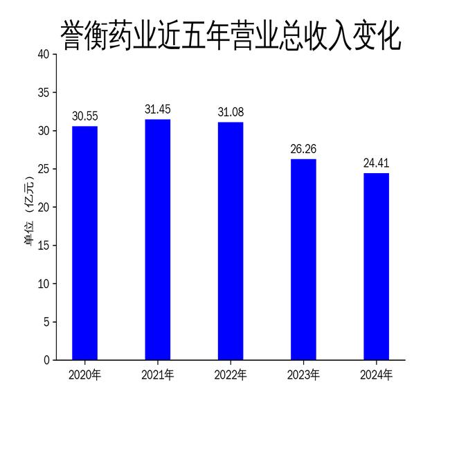 誉衡药业2024年营业总收入为24.41亿元,同比下降7.06%。这是公司连续第三年营收下滑,2023年和2022年分别同比下降15.51%和1.19%。尽管公司在多个细分市场处于领先地位,如安脑丸/片、氯化钾缓释片(补达秀)和注射用多种维生素(12)等,但整体营收的下滑表明公司在市场竞争中面临较大压力。