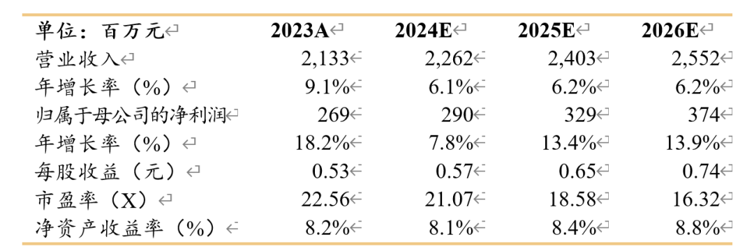 我国核电审批进入常态化阶段,2024年审批11台核电机组创历史新高。公司作为核电阀门龙头,有望充分受益。此外公司在冶金、化工等行业的特种阀门市场保持较高市占率,有望随特种阀门行业持续增长。我们预计2024、2025、2026年公司营业收入分别为22.62、24.03、25.52亿元,同比增长分别为6.1%、6.2%、6.2%,归母净利润分别为2.90、3.29、3.74亿元,同比增长分别为7.8%、13.4%、13.9%,对应EPS分别为0.57、0.65、0.74元,对应12月18日收盘价,PE分别为21.07、18.58、16.32倍,首次覆盖给予“增持”评级。