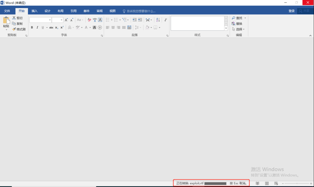 双击打开exploit.rtf文件,可以看到底部提示正在转换。