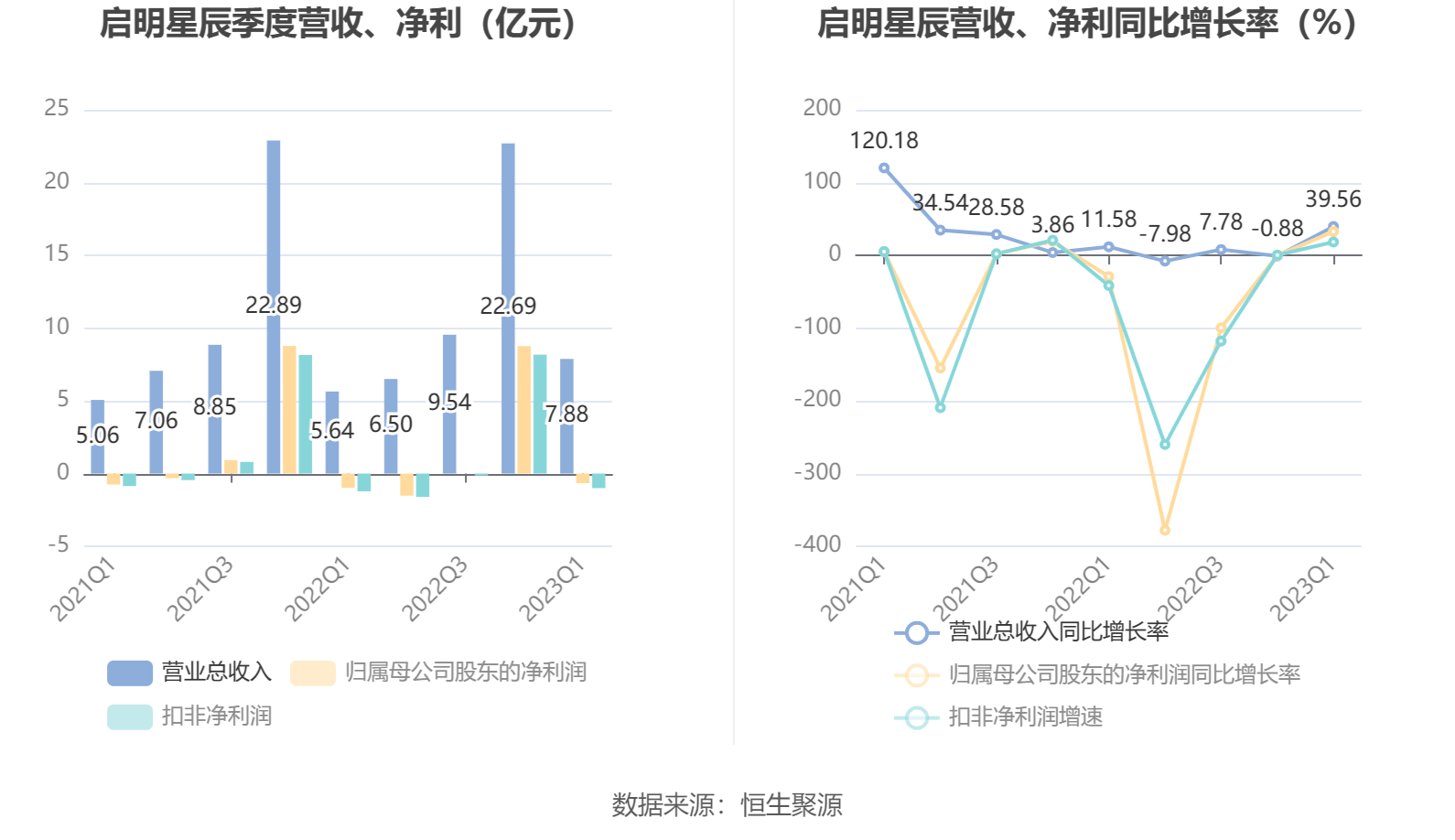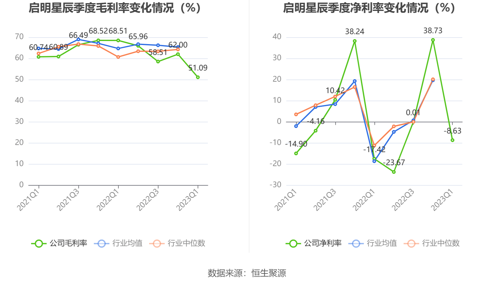 数据显示,2023年一季度,公司毛利率为51.09%,同比下降17.43个百分点,环比下降10.91个百分点;净利率为-8.63%,较上年同期上升8.79个百分点,较上一季度下降47.36个百分点。