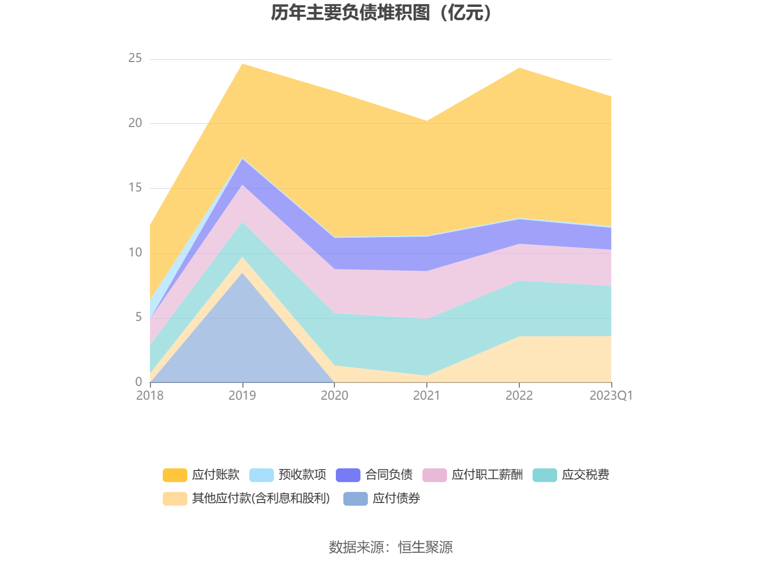负债重大变化方面,截至2023年一季度末,公司应付账款较上年末减少13.73%,占公司总资产比重下降1.37个百分点;合同负债较上年末减少10.63%,占公司总资产比重下降0.16个百分点;预收款项较上年末增加33.09%,占公司总资产比重上升0.04个百分点;其他流动负债较上年末减少9.31%,占公司总资产比重下降0.01个百分点。